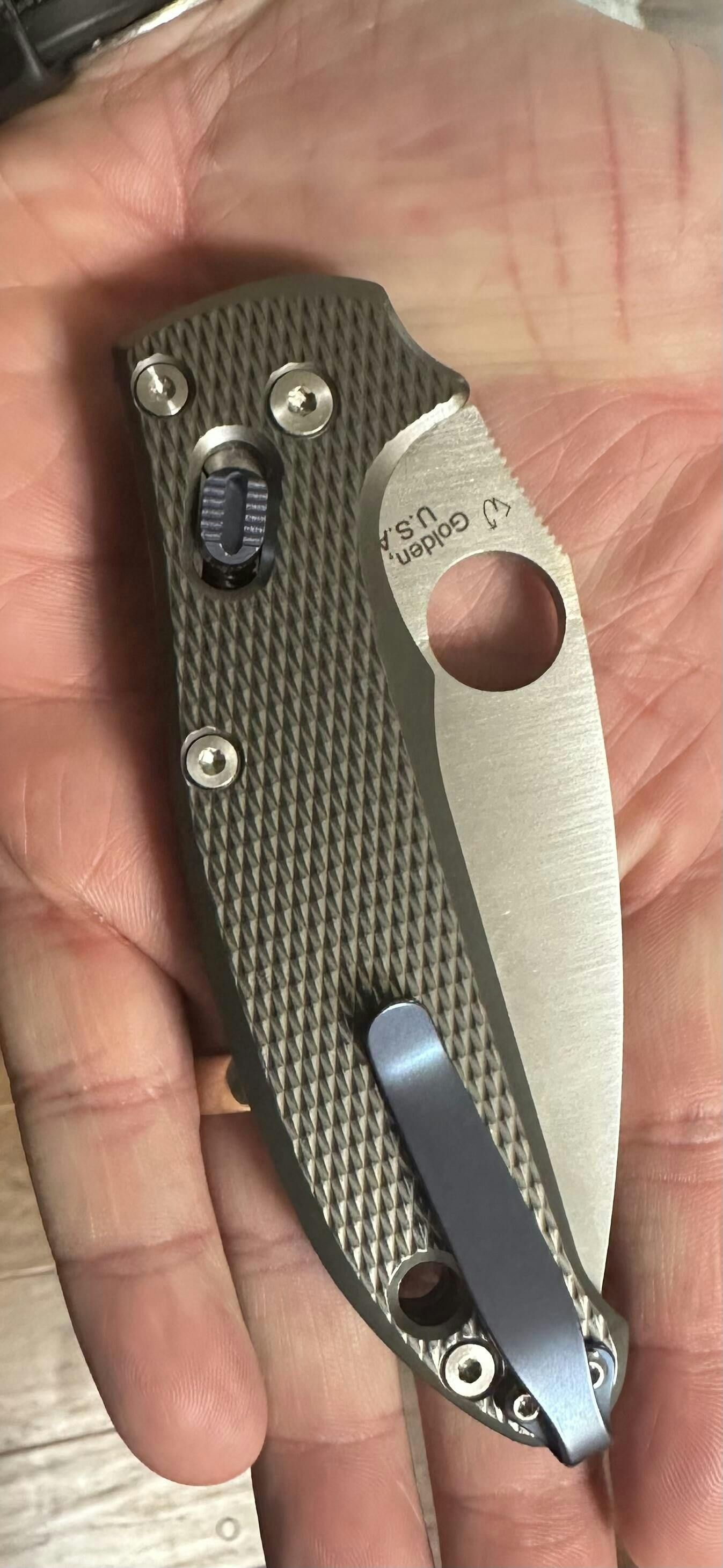 Custom hand made titanium deep carry pocket clip for Spyderco knives Manix 2 G-10 C101GP2, it's made of 6al-4v titanium. The clip comes with 2 T6 Stainless Torx Screws (Knife is not included).