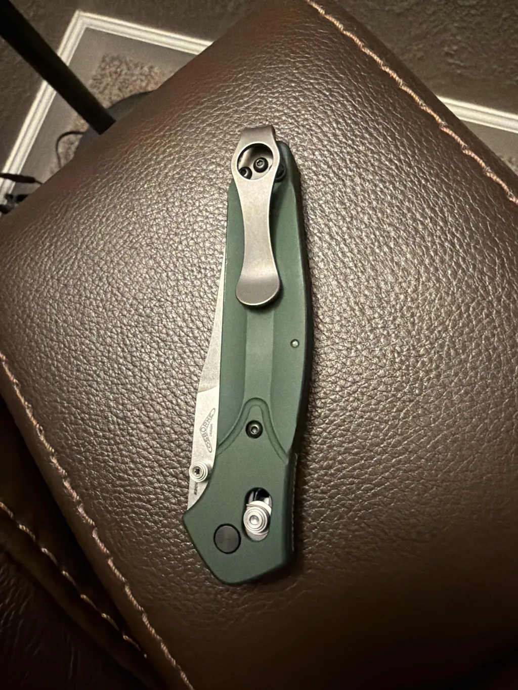 Custom hand made titanium deep carry pocket clip for Benchmade knives, it's made of 6al-4v titanium. The clip comes with 3 T6 Stainless Torx Screws (Knife is not included).